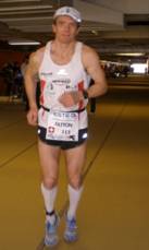Mon petit cousin Jean-François établi à Helsinki vient voir la course avec son épouse Kirsi et reste quelques 2 heures. Pas brillant de me montrer dans cet état. Aux 9 h de temps, je provoque de vomir. Cela sort durant 4 minutes. Ensuite, je retrouve la forme jusqu’aux 12 heures où je passe avec 128 km, soit 800 m de plus qu’à Séoul et selon mes souhaits, malgré les douleurs gastriques qui me font perdre du temps.