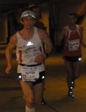 Jusqu’aux 14 h, je cours à plus de 10 km/h. J’y crois dur comme fer de pouvoir atteindre 250 km même si je sais que faire 122 km lors des 12 dernières heures ne sera pas facile. Aux 15h, j’ai dit que j’en avais marre, car je vois que je ne tourne plus assez vite et j’ai vraiment faim. Je questionne Julia pour savoir qu’est-ce qu’il y a à manger ou à boire au stand officiel. Ils n’y a ni bouillon ni soupe qui me feraient plaisir. Mais il faut que je mange, absolument.