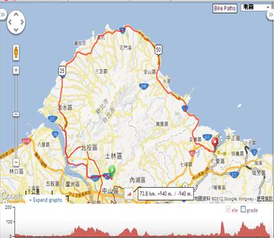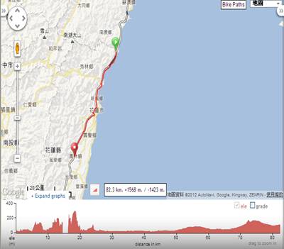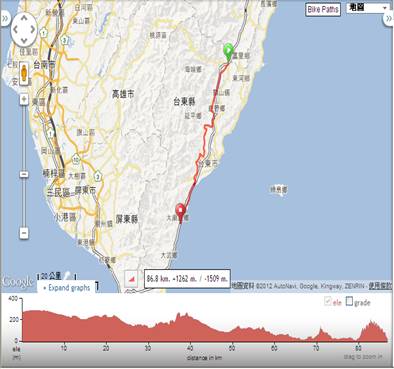 | 1ère étape 30.03.13 Soochow-Keelung 76.27km, 7h24.41, 425m +, 420m - |